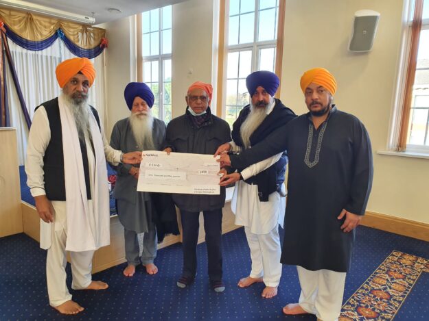 Mr Landa chairman Hayden Road Sherwood Nottingham presented £1000 cheque to Dr S M Qurehi M B E Director ECHO In Nottingham