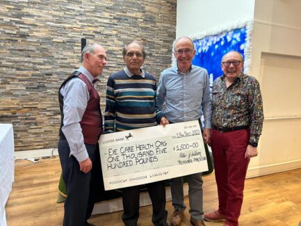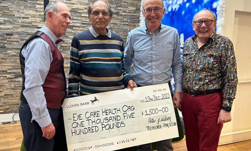 Cheque photo:- (L to R) Mr Richard Horns club captain – Dr S M Qureshi M. B.E. Echo CEO – Mr Peter Wilson treasurer 3 Par club and Ron Coles club chairman.